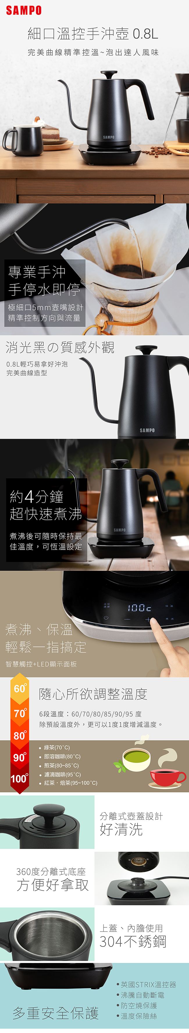 專業手沖設計,手停水即停,極細口5mm壼嘴,精準控制方向與流量。
