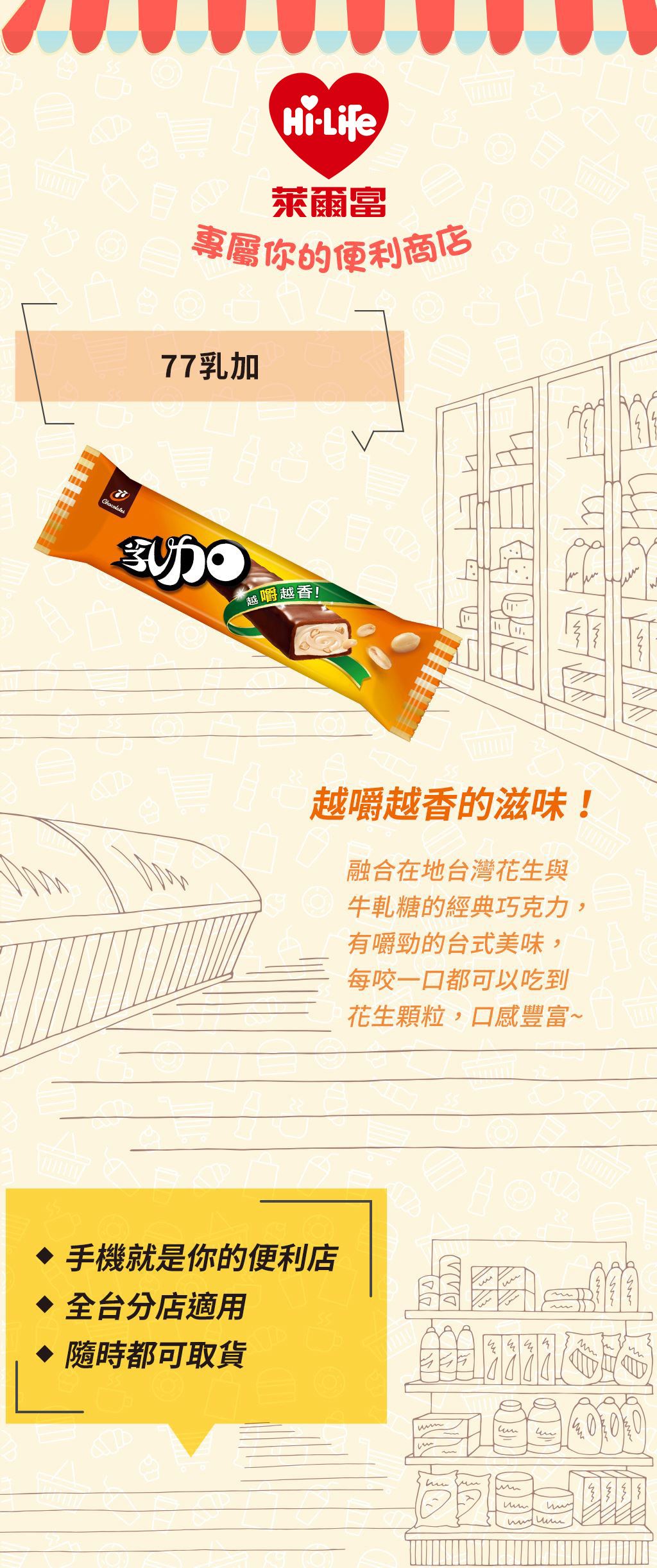 手機就是你的便利店!牛奶巧克力遇上牛軋糖,每一口都可以吃到花生顆粒,越嚼越香的滋味