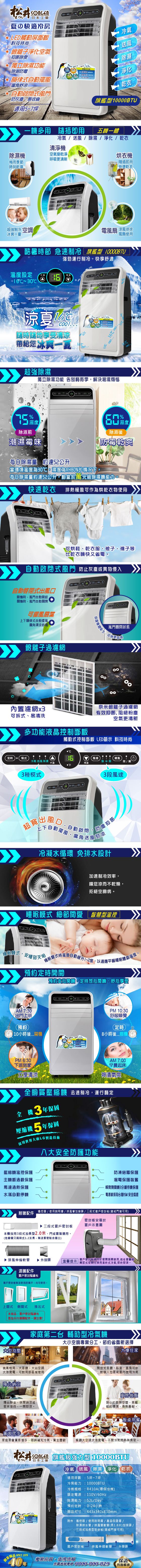冷氣/除濕/涼風/空氣清新 強力制冷,快速降溫,獨立除濕 銀離子濾網、淨化空氣 移動方便、110V 隨插即用 自動啟閉封