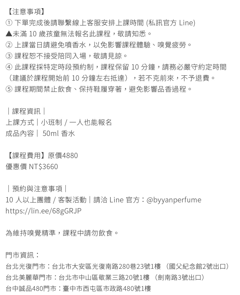 10 人以上團體 / 客製活動|請洽 Line 官方:@byyanperfume