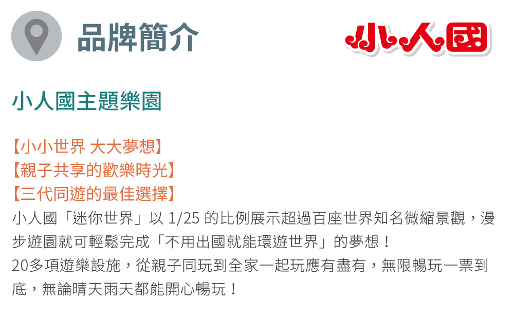 ◎若小人國現場推出短期促銷,票價優於本專案,您可選擇現場購票,兩者權益互不影響。已訂購但未使用票券,可取消訂單,不影響您的權益