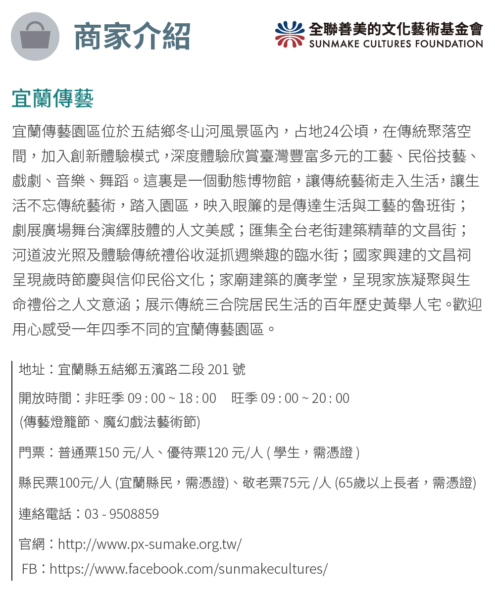 ★宜蘭國立傳統藝術中心門票(普通票)1張