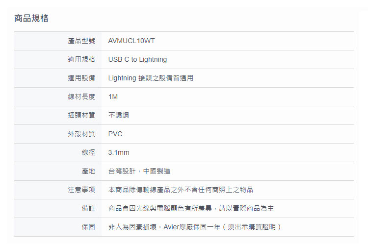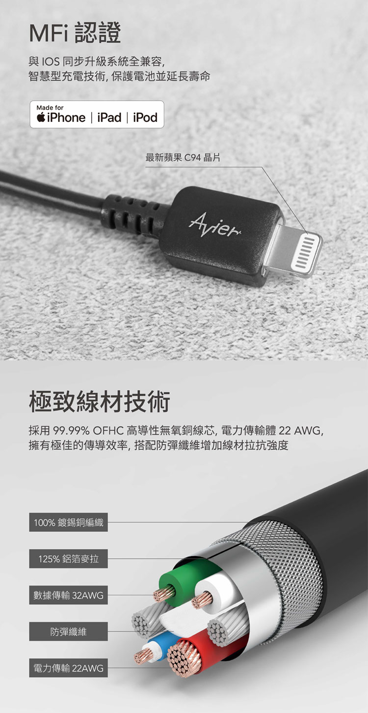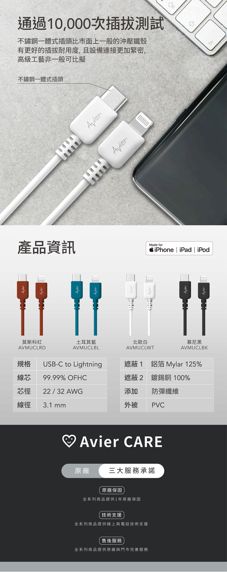Avier|COLOR MIX C to Lightning 高速充電傳輸線-1M 北歐白