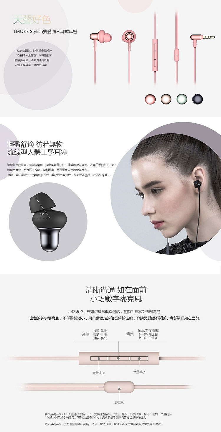 1MORE|E1025 Stylish 雙動圈入耳式耳機 (金)