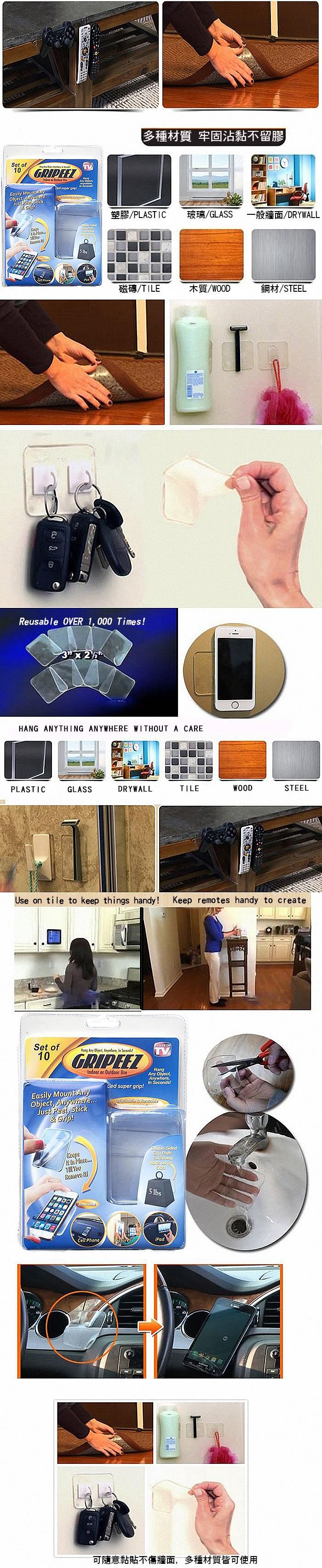 非買不可理由 ★善用牆壁的空間不破壞原有外觀進行多次沾黏 ★改善桌面零亂不整 ★強力沾粘不留膠,清洗後還可以重複使用