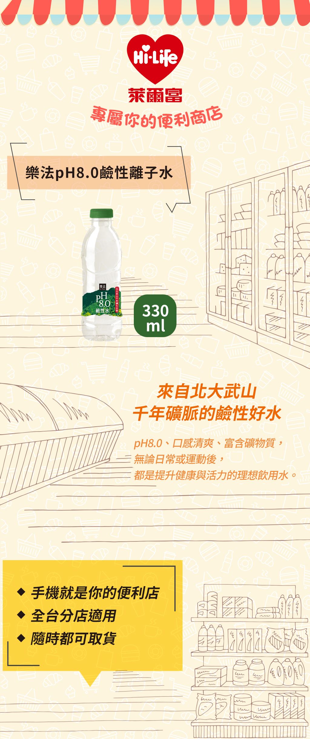 萊爾富-樂法pH8.0鹼性離子水(330ml)一入/五入<純點兌換>