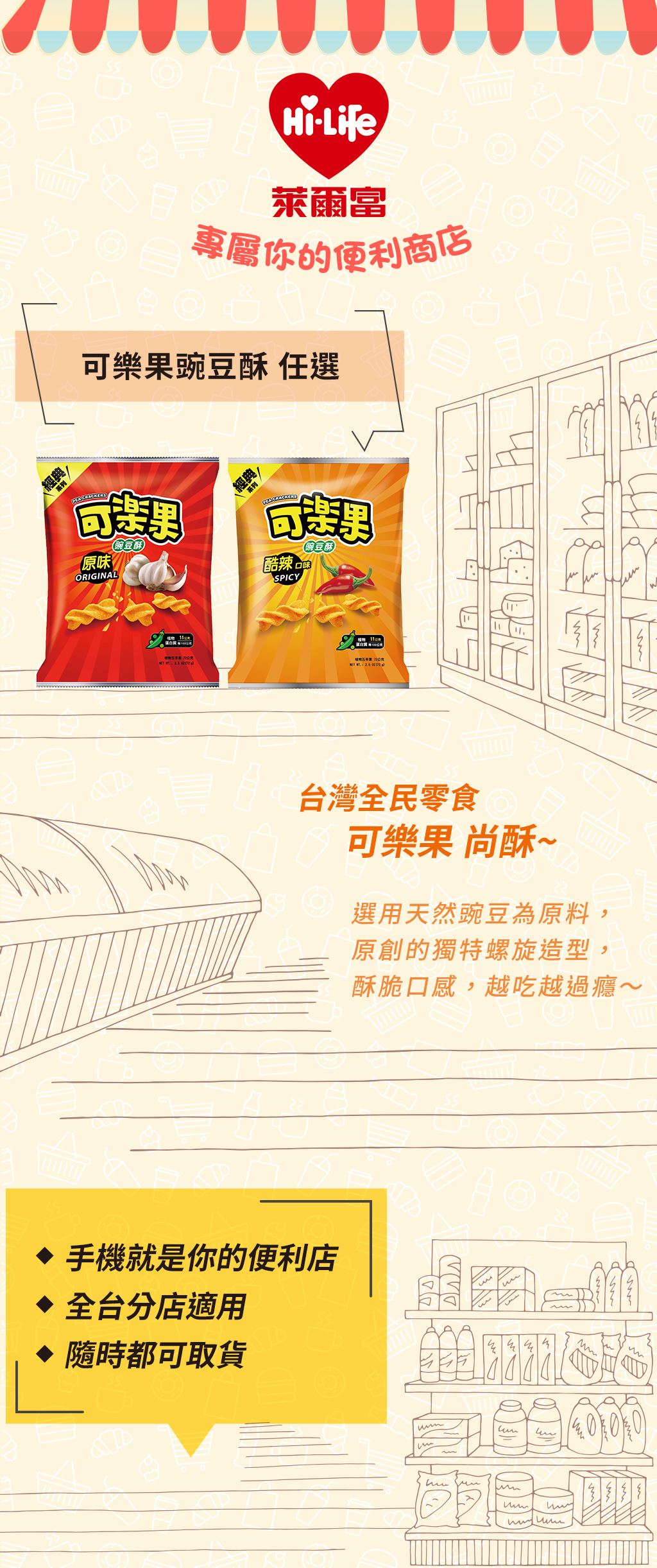 手機就是你的便利店!尚讚ㄟ台灣味!選用天然碗豆做為原料,獨特螺旋造型,口口酥脆,大人小孩都好愛!