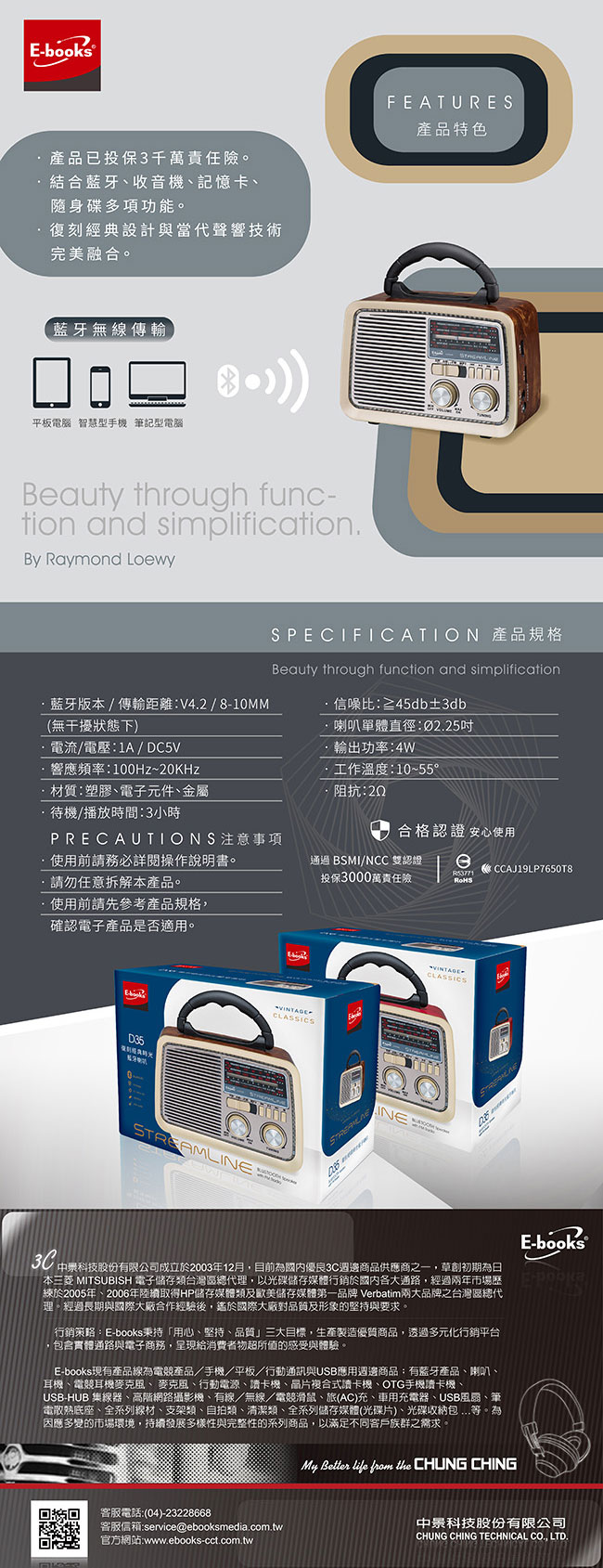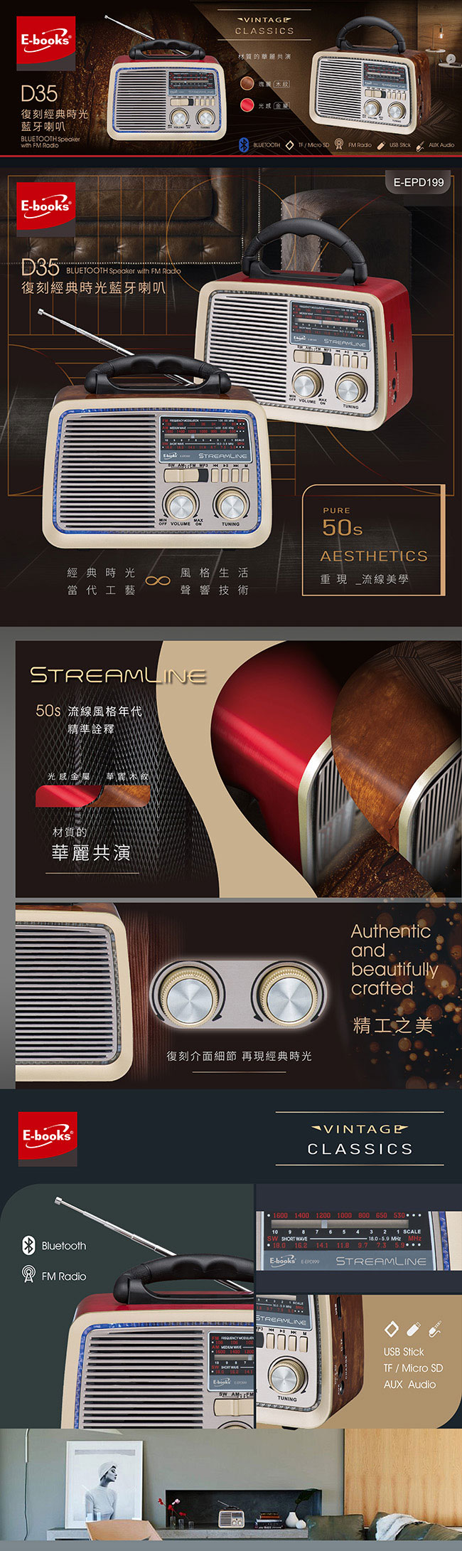 E-books|D35 復刻經典時光藍牙喇叭(木紋)
