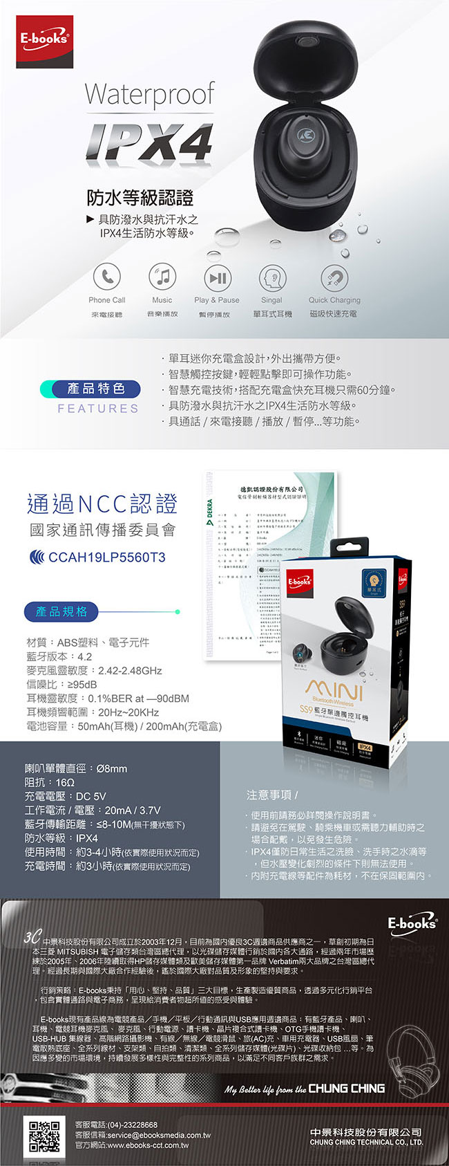 E-books|SS9 藍牙單邊觸控耳機