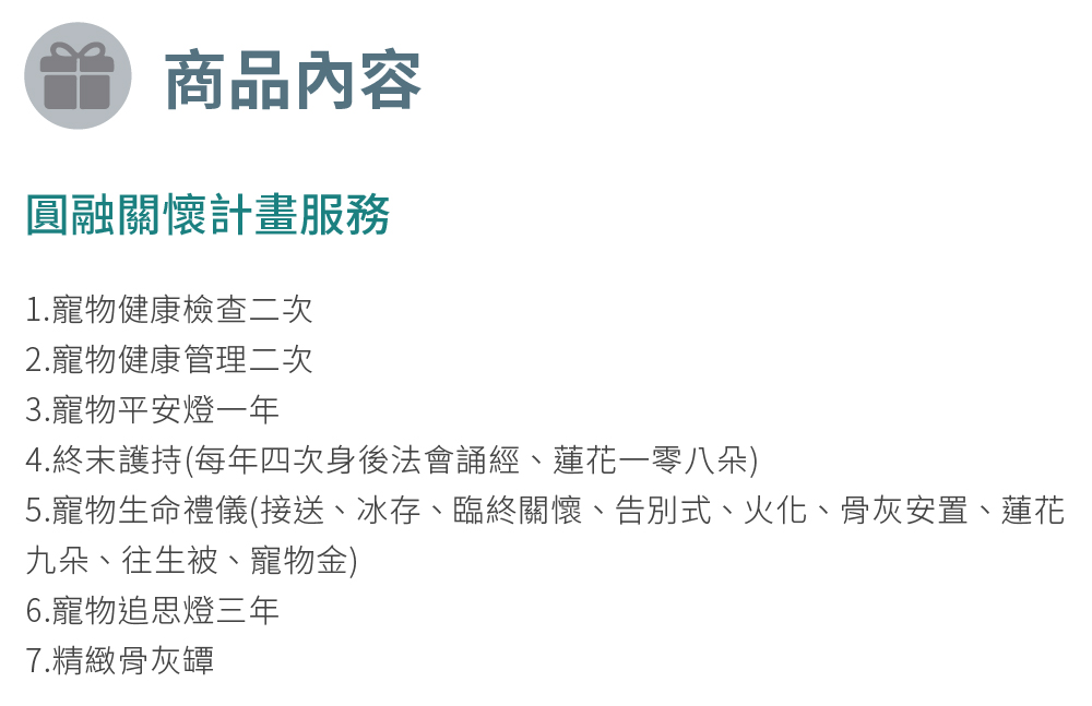 5. 寵物生命禮儀(接送、冰存、臨終關懷、告別式、火化、骨灰安置、蓮花九朵、往生被、寵物金)