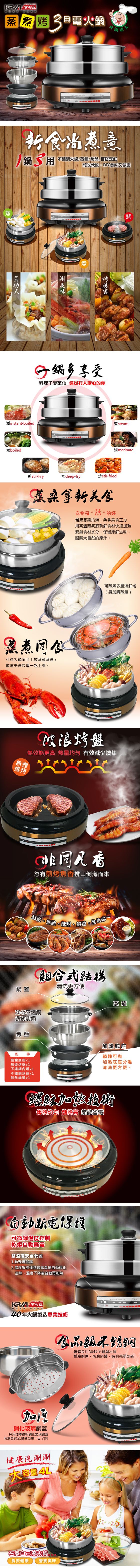 蒸籠、鍋體採304#不鏽鋼材質 螺紋加熱技術,傳熱均勻及省電 加厚鋼化玻璃上蓋,煮食看得見 鍋體/加熱底座可分離