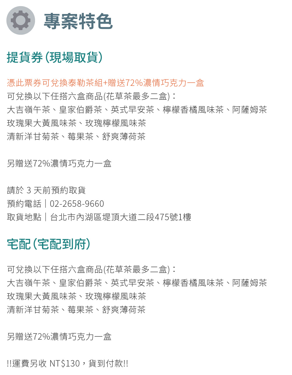 雙11!台北內湖【一品順】限定禮盒泰勒茶禮盒組買一送一兌換券(MO)