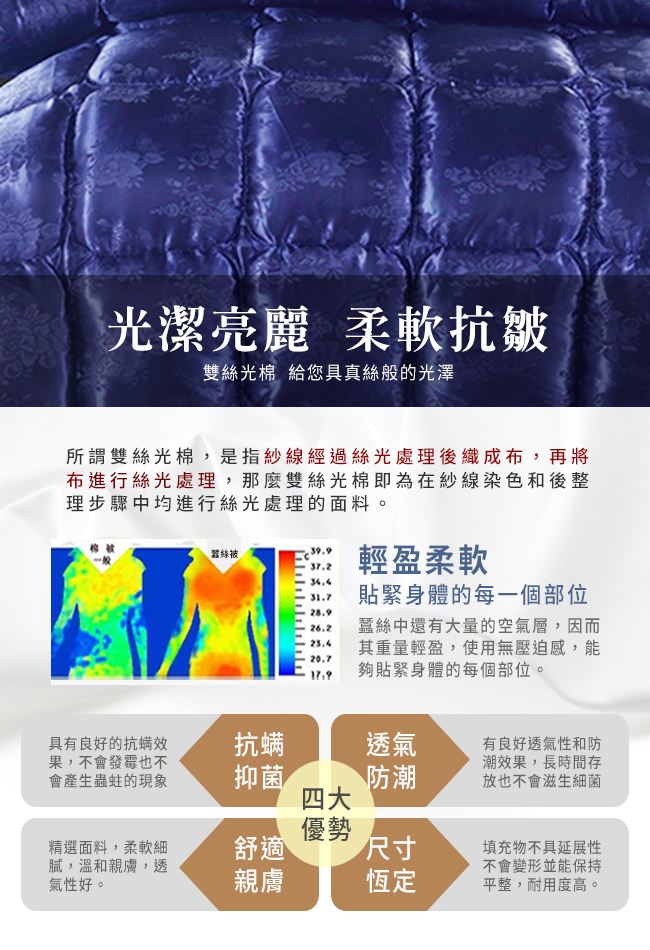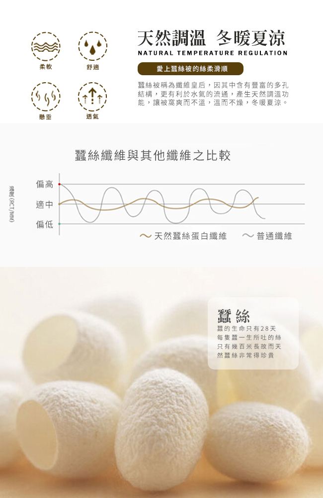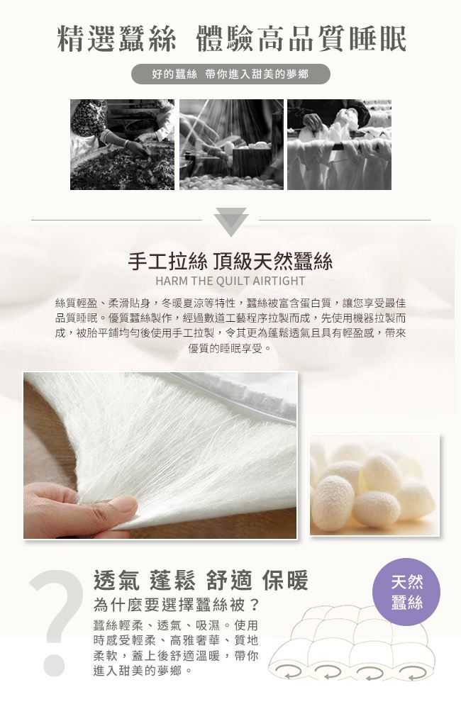 天然嚴選蠶絲,防霉防蹣,輕盈保暖