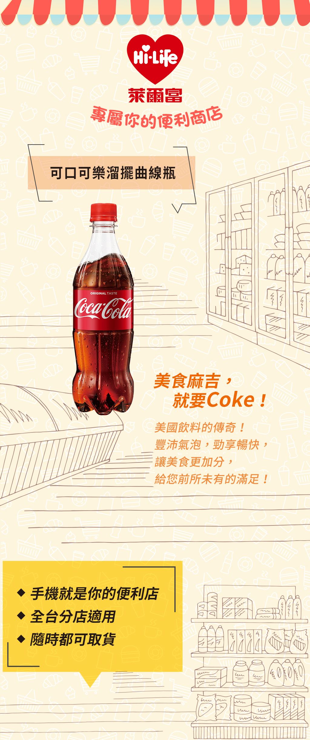 美食麻吉,就要Coke!美國飲料的傳奇!豐沛氣泡,勁享暢快,讓美食更加分!