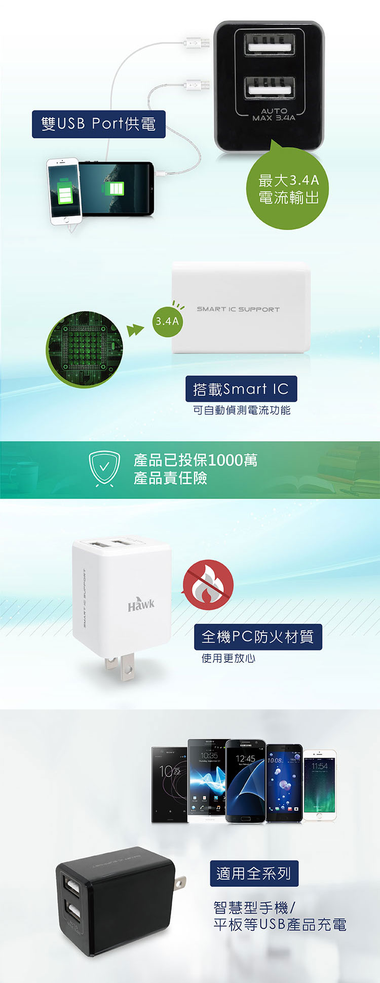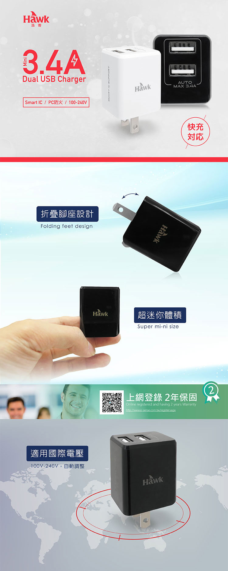 Hawk 浩客|Mini 3.4A充電器-黑