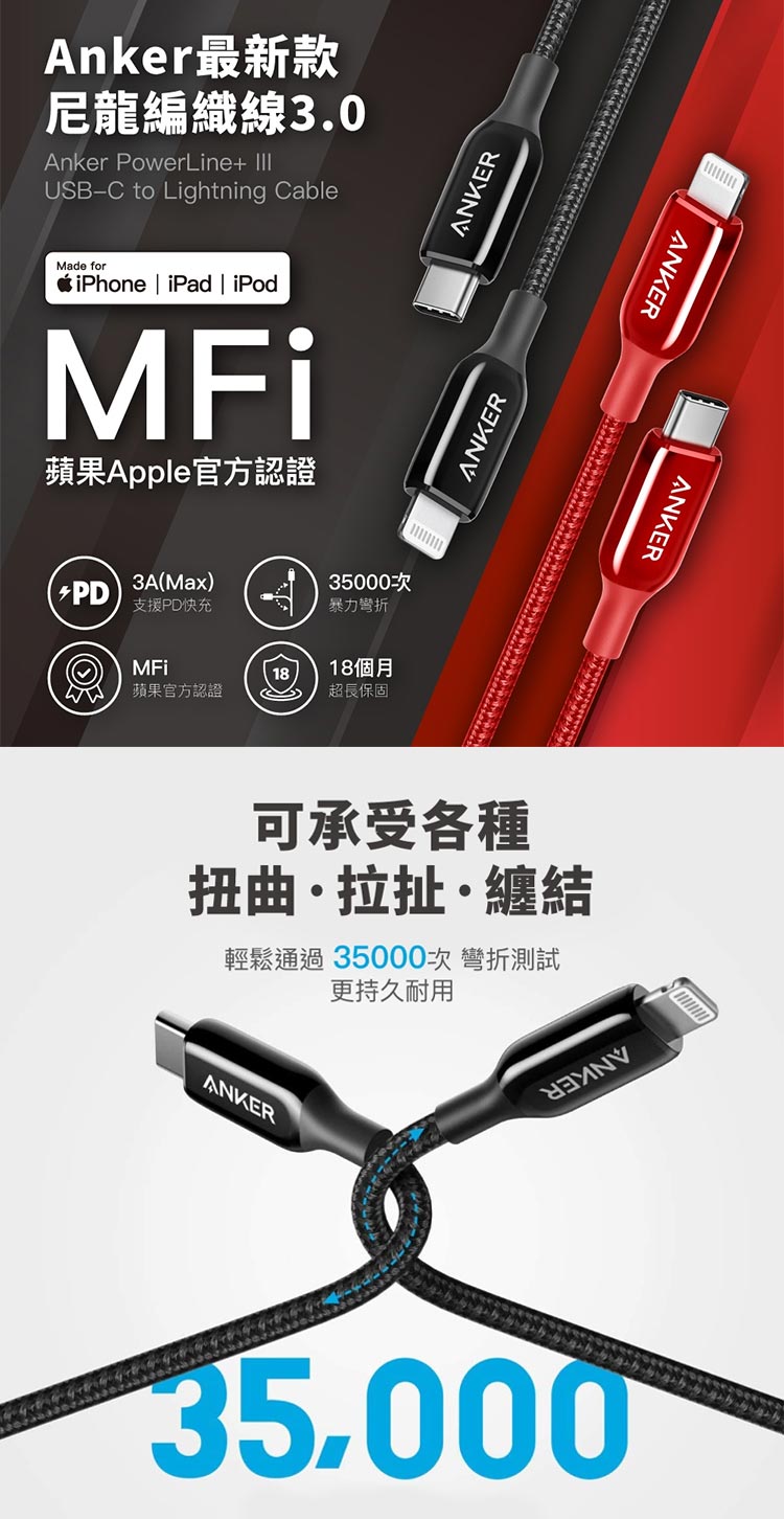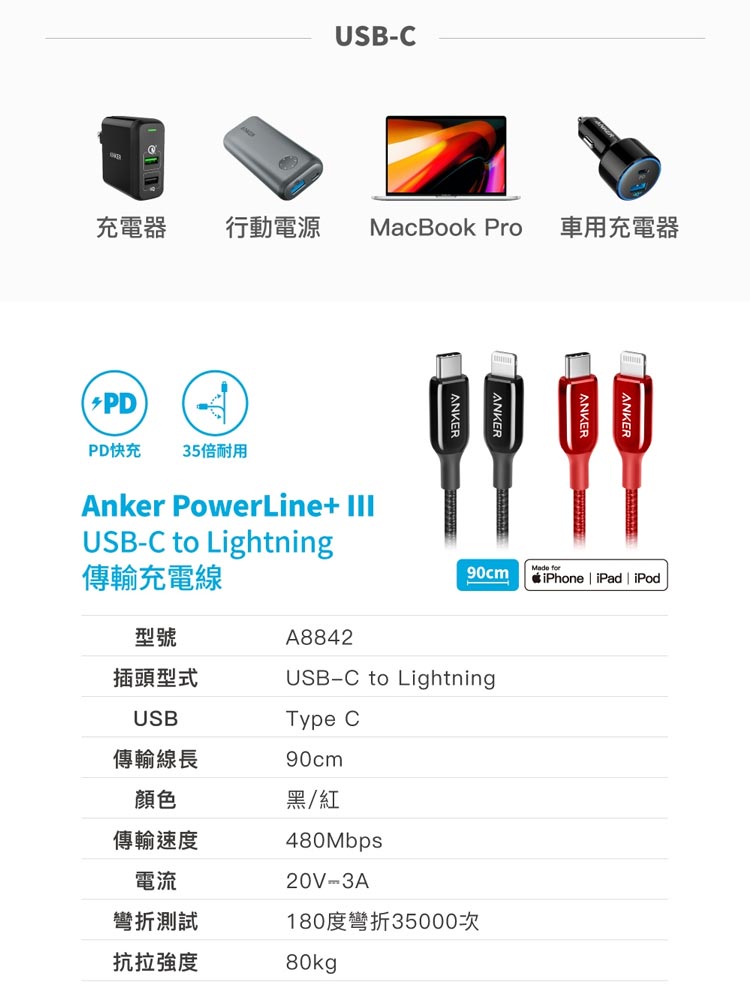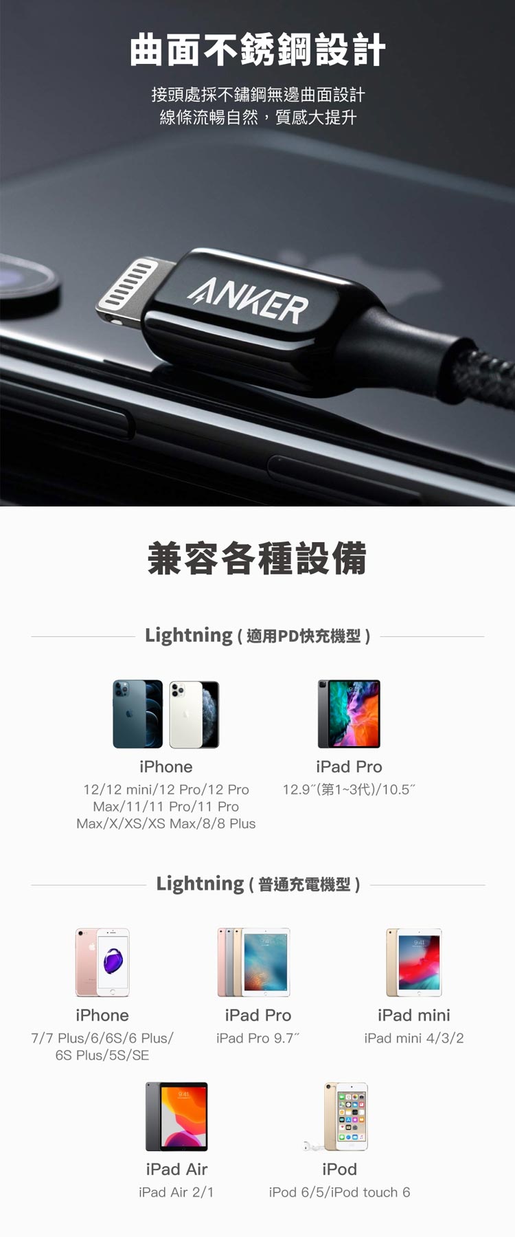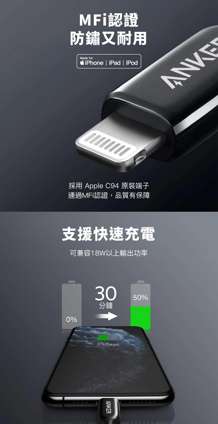 ANKER|USB-C to Lightning 編織充電線-90CM 黑