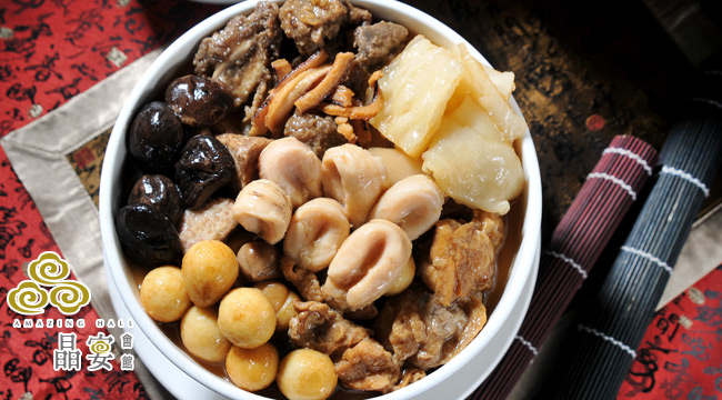法式羊小排 羊排、特調法式醬 (300g±10g/份) 鮑魚佛跳牆 含甕 智利鮑6顆、香菇、栗子、筍干、芋頭、 阿根廷魷魚、豬腳、雞肉、排骨、鳥蛋、魚肚 (2200g±20g/份) 宮廷花雕蝦 白蝦、紹興酒、中藥材 (360g±10g/份) 香蔥油雞 雞腿、青蔥油 (500g±10g/份) 干貝長年菜 芥菜、日本干貝 (600g±10g/份) 加贈 黃金酥 蝦米、火腿、三星蔥、香菇 (180g±10g/份) ─ 建議四至六人分享 ─ 品生活優惠憑證使用條款 此憑證由等值購物金兌換之 本憑證不得與其他優惠合併使用,且恕無法兌換現金 好康憑證不限本人使用,使用時店家將會核對憑證編號,一組編號限用一次 信託期間:發售日起一年內 本商品(服務)禮券所收取之金額,已存入發行人於台新銀行開立之信託專戶,專款專用。所稱專用,係指供發行人履行交付商品或提供服務義務使用查看好康憑證使用條款