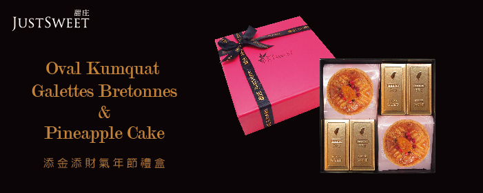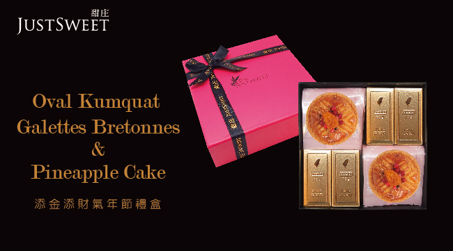 添金添財氣 金磚鳳梨酥禮盒 商品內容:金磚鳳梨酥12入 賞味期限:常溫30天 。 特別選用台南關廟台農17號鳳梨,纖維適中、果肉香甜不酸的特色,也就是俗稱的金鑽鳳梨,4台斤的鳳梨才能烘焙出1條的JustSweet 金磚鳳梨酥,堅持完全不加人工添加物,保留鳳梨天然香氣,再揉合安佳奶油製成的金黃外皮,以溫潤的手感取代機器的揉捏,每口都可以吃的到鳳梨的微酸清甜果肉及淡淡奶香,讓大家嚐到真實本味的鳳梨酥。 。 ──────────────────────────────────────────────────────────────────── 吉祥添富貴 年節禮盒 商品內容:金磚鳳梨酥4入、 金棗布列塔尼酥餅4入 賞味期限:常溫21天 。 金黃酸甜的蜜金棗與厚實酥鬆的濃順酥餅相佐,帶點純實的奶油香氣、微鹹的大海氣味及濃郁柔順的層次,就像是中式的吉祥味與法式的美味相互交疊,如此地吉祥富貴享口福。 。 ──────────────────────────────────────────────────────────────────── 甜甜添好運 金耀年節禮盒 商品內容:綜合手工餅乾 8入、 蔓越莓杏仁牛軋糖1罐、法式巧克 力蛋白球1包、手作雪球1包、 杏仁瓦片1包 賞味期限:常溫21天 。 綜合手工餅乾:選用紐西蘭安佳奶油,不添加人工酥油,再加入大量堅果製作而成,師傅紮實手作,無可取代的溫潤食感。 蔓越莓杏仁牛軋糖:天然微酸的蔓越莓及進口大粒杏仁,使用海藻糖降低甜度,堅持少糖少甜,輕巧品味低負擔,健康美味如此純粹。 杏仁瓦片:道地法式手工烘焙,獨到的特殊風味,單純卻不簡單,天然杏仁與法國進口奶油相互融合,輕脆細緻不膩口。 。 ※ 避免陽光直射高或濕熱環境,請放置於陰涼處,產品不含防腐劑及人工添加物,開封後請盡快食用完避。 品生活優惠憑證使用條款 此憑證由等值購物金兌換之 本憑證不得與其他優惠合併使用,且恕無法兌換現金 好康憑證不限本人使用,使用時店家將會核對憑證編號,一組編號限用一次 信託期間:發售日起一年內 本商品(服務)禮券所收取之金額,已存入發行人於台新銀行開立之信託專戶,專款專用。所稱專用,係指供發行人履行交付商品或提供服務義務使用查看好康憑證使用條款
