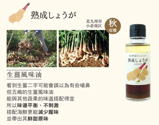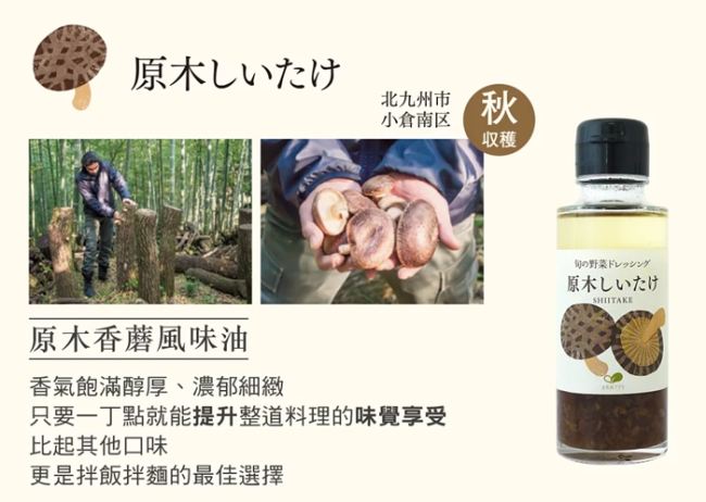 嚴選素材 口味介紹 商品規格 日本五嵨 權益說明 嚴選素材 品生活優惠憑證使用條款 此憑證由等值購物金兌換之 本憑證不得與其他優惠合併使用,且恕無法兌換現金 好康憑證不限本人使用,使用時店家將會核對憑證編號,一組編號限用一次 信託期間:發售日起一年內 本商品(服務)禮券所收取之金額,已存入發行人於台新銀行開立之信託專戶,專款專用。所稱專用,係指供發行人履行交付商品或提供服務義務使用查看好康憑證使用條款 口味介紹 ★百年品牌,手工釀造無添加 ★日本媽媽的秘密,安心美味 ★無添加化學調味料、防腐劑 ★搭配簡單食材及可提升風味 ★100%原裝進口公司正貨 |番茄沙拉風味油| |洋蔥沙拉風味油| |海藻沙拉風味油| |生薑沙拉風味油| |原木香蘑沙拉風味油| 品生活優惠憑證使用條款 此憑證由等值購物金兌換之 本憑證不得與其他優惠合併使用,且恕無法兌換現金 好康憑證不限本人使用,使用時店家將會核對憑證編號,一組編號限用一次 信託期間:發售日起一年內 本商品(服務)禮券所收取之金額,已存入發行人於台新銀行開立之信託專戶,專款專用。所稱專用,係指供發行人履行交付商品或提供服務義務使用查看好康憑證使用條款 商品規格 口味:番茄沙拉風味油、洋蔥沙拉風味油、海藻沙拉風味油、生薑沙拉風味油、原木香蘑沙拉風味油 成分:釀造醋,醬油(小麥,大豆),食用植物油脂(油菜籽油),砂糖,洋蔥,酸橘汁,味醂,清酒,食鹽,乾燥香菇,昆布粉,昆布,鰹魚片,香辛料(胡椒) 內容量:100ml 原產地(國):日本 保存期限:1年 品生活優惠憑證使用條款 此憑證由等值購物金兌換之 本憑證不得與其他優惠合併使用,且恕無法兌換現金 好康憑證不限本人使用,使用時店家將會核對憑證編號,一組編號限用一次 信託期間:發售日起一年內 本商品(服務)禮券所收取之金額,已存入發行人於台新銀行開立之信託專戶,專款專用。所稱專用,係指供發行人履行交付商品或提供服務義務使用查看好康憑證使用條款 日本五嵨 品生活優惠憑證使用條款 此憑證由等值購物金兌換之 本憑證不得與其他優惠合併使用,且恕無法兌換現金 好康憑證不限本人使用,使用時店家將會核對憑證編號,一組編號限用一次 信託期間:發售日起一年內 本商品(服務)禮券所收取之金額,已存入發行人於台新銀行開立之信託專戶,專款專用。所稱專用,係指供發行人履行交付商品或提供服務義務使用查看好康憑證使用條款 權益說明 配送事項 ●配送時間:商品最晚於購買成功5個工作日內出貨完畢,遇假日順延至工作日始起第一日(春節期間2/13~2/20不出貨),出貨後配送約2~3個工作日,恕無法指定送達時間 ●配送方式:常溫宅配 鑑賞期 ●此商品依現行法令規範,排除適用於七日鑑賞期,看更多詳細說明 品生活優惠憑證使用條款 此憑證由等值購物金兌換之 本憑證不得與其他優惠合併使用,且恕無法兌換現金 好康憑證不限本人使用,使用時店家將會核對憑證編號,一組編號限用一次 信託期間:發售日起一年內 本商品(服務)禮券所收取之金額,已存入發行人於台新銀行開立之信託專戶,專款專用。所稱專用,係指供發行人履行交付商品或提供服務義務使用查看好康憑證使用條款