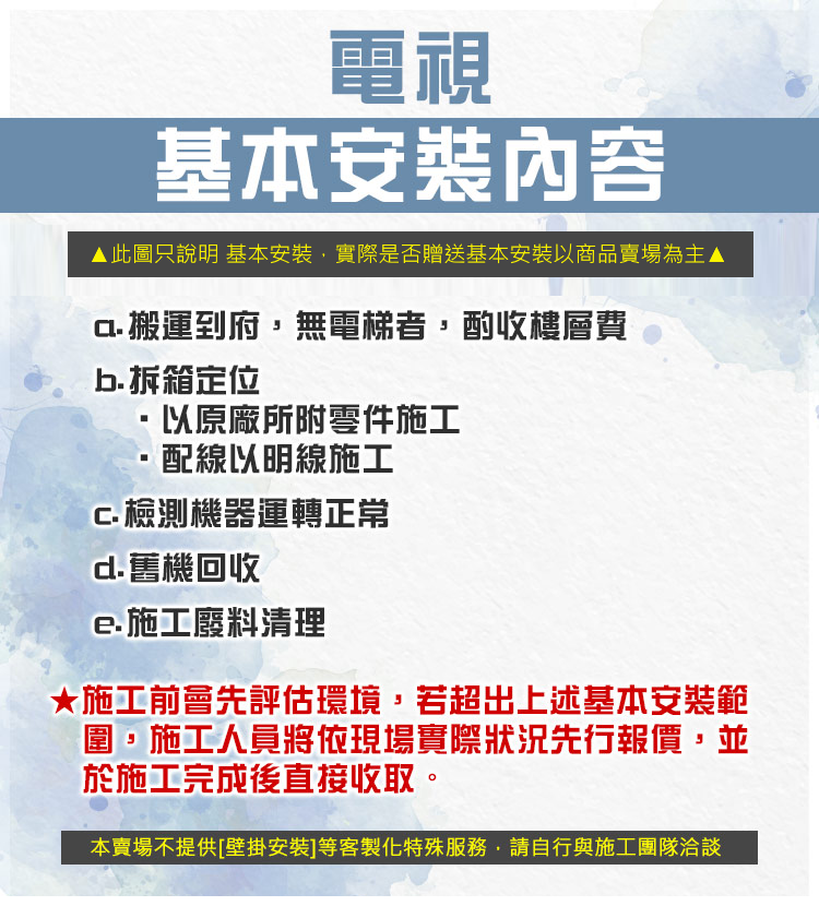 ▼下圖只說明 基本安裝的內容,實際是否有贈送基本安裝以商品賣場為主▼ ▲上圖只說明 基本安裝的內容,實際是否有贈送基本安裝以商品賣場為主▲